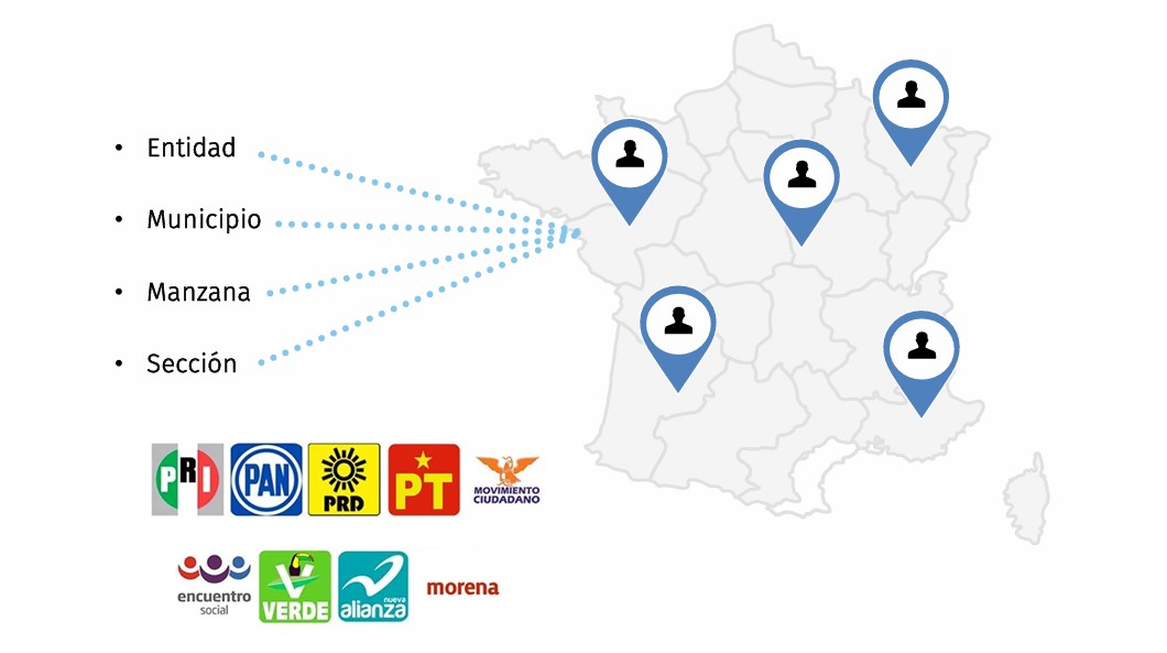 Visualización geográfica por municipio, sección o manzana.